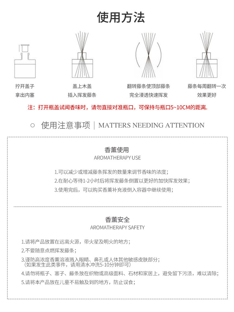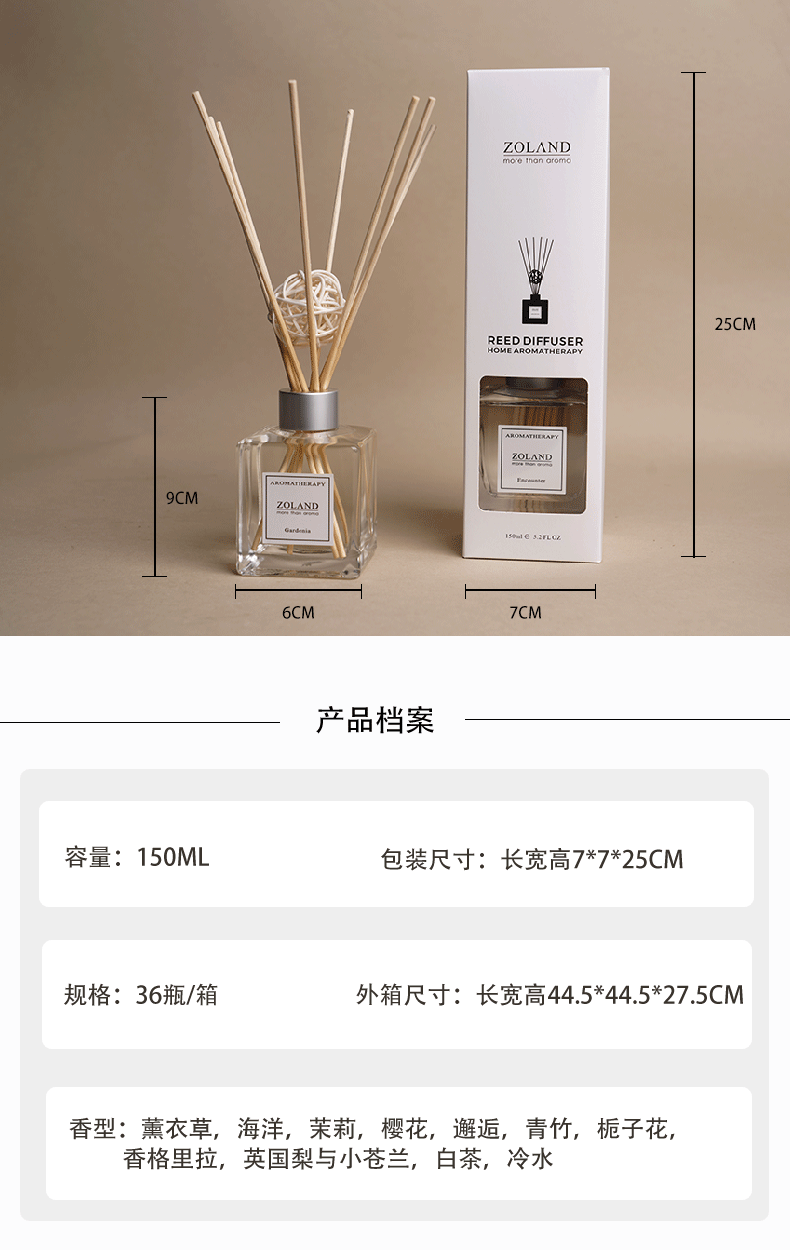 无火香薰,藤条,150ml方形玻璃瓶,藤球,自然散发