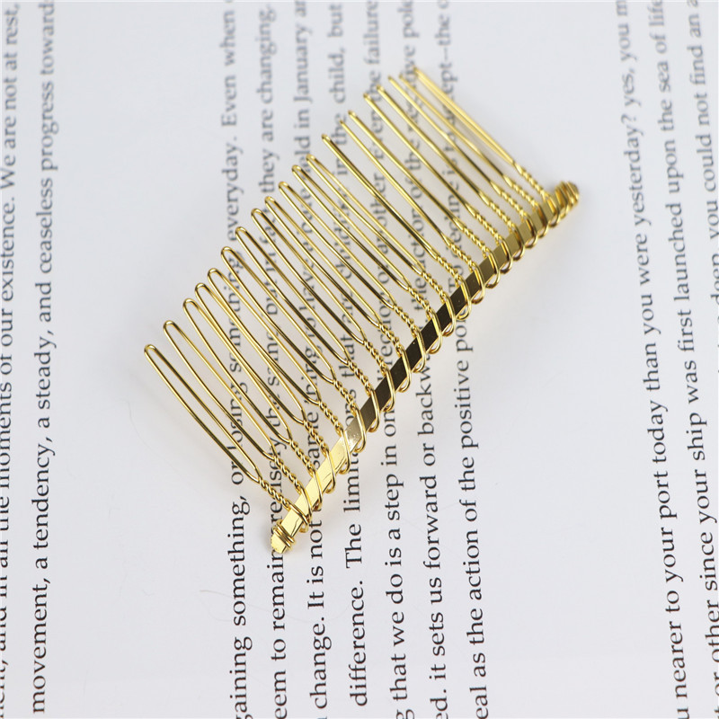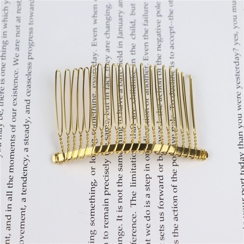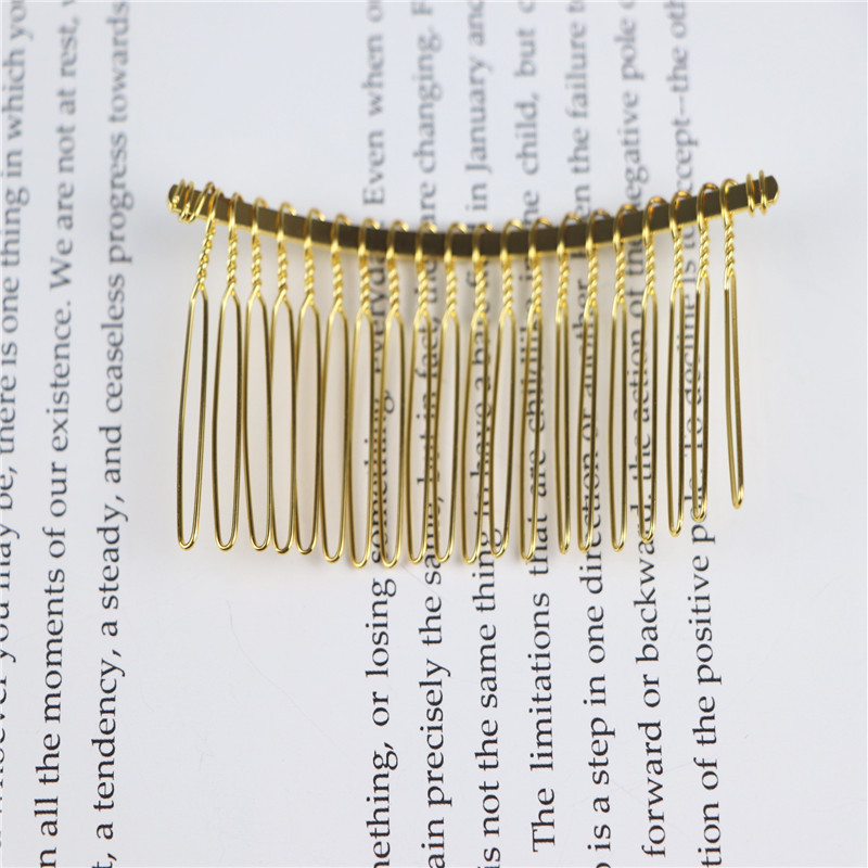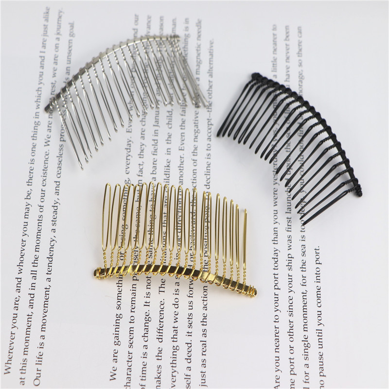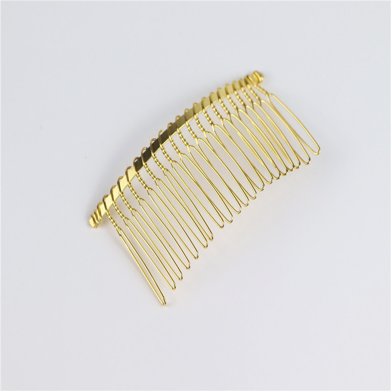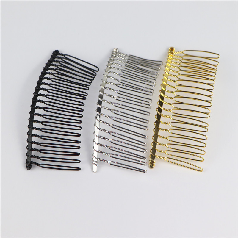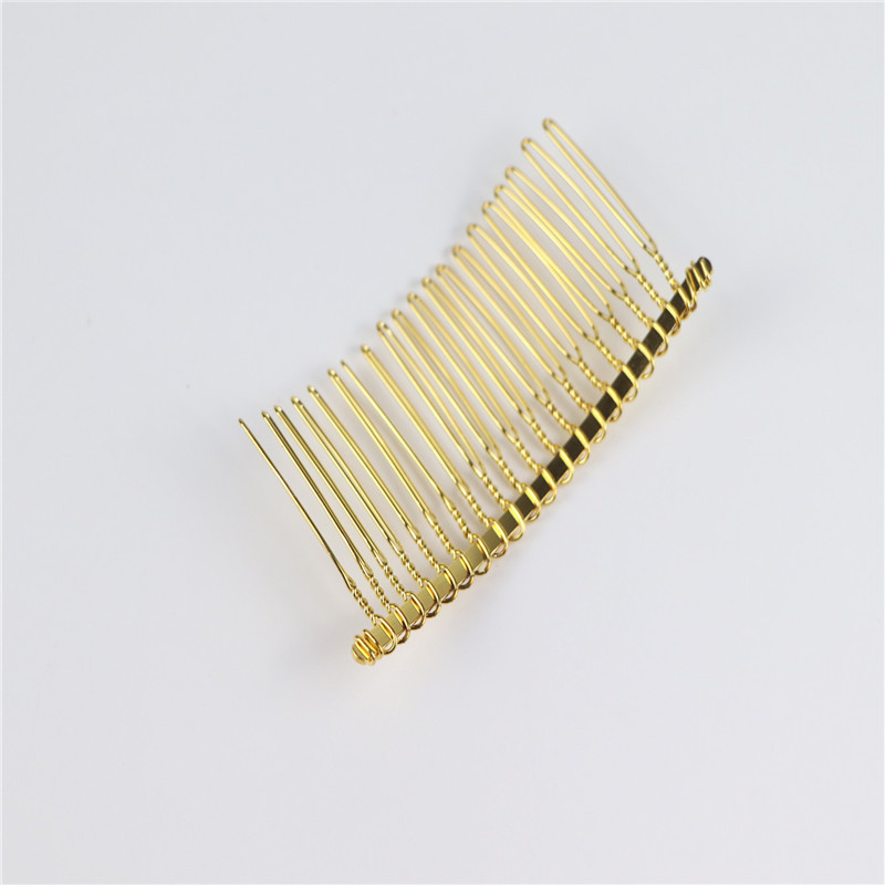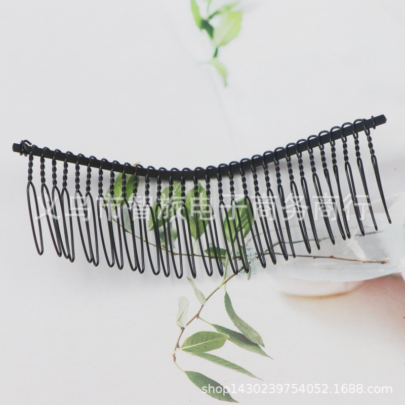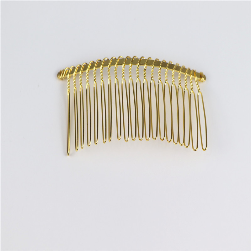 畅销20齿铁丝发梳,长度是8厘米,宽度是3.8厘米,一般是黑色、白K、金黄三个颜色,100个一袋,简易包装,量大可以定做加工。类似的梳子还有10齿的铁丝发梳