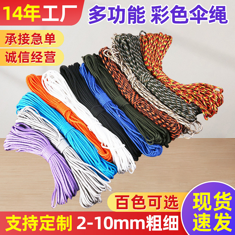 新款七芯伞绳 按550标准制作,进口设备绕制,直径4毫米,单绳拉力在280斤。绳体纺织得相当浑圆紧密,表面纹理相当细致,耐磨性相当好,频繁摩擦后也不起毛,