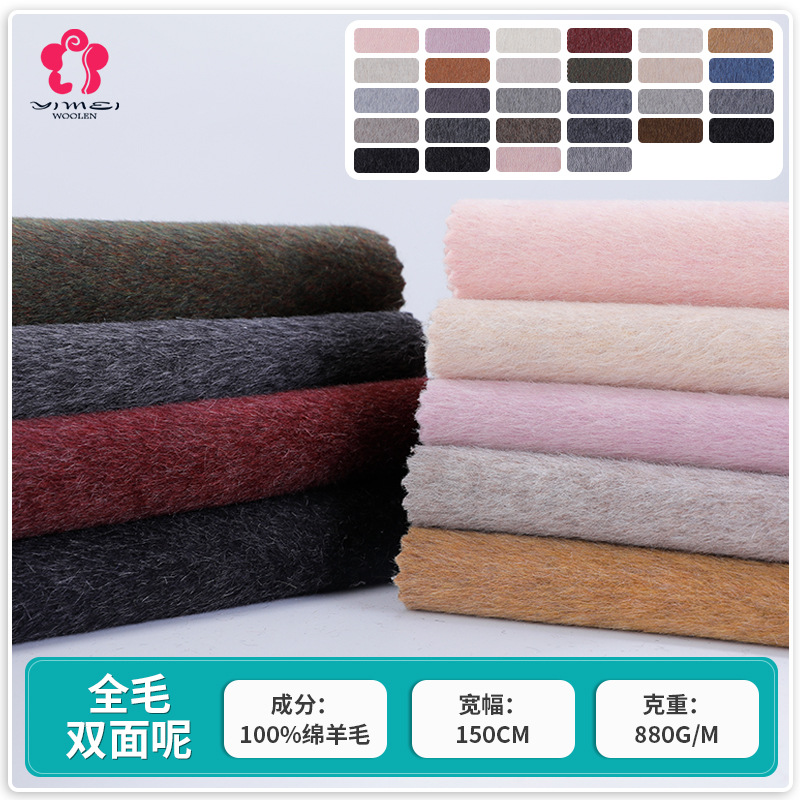 5羊绒长毛混色双面呢绵羊毛呢面料大衣呢秋冬女装外套布料批发