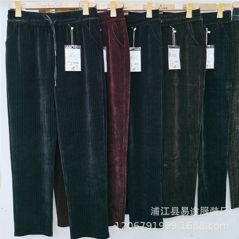 新款的火爆产品莫尔绒休闲妈妈裤,弹性好,