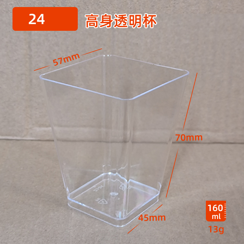 24高身角形使い捨て透明プラスチックムースカップケーキカップゼリーカップ布丁カップデザートカップ160ml