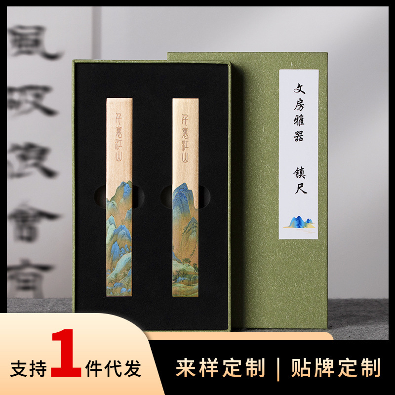 千里江山实心黄铜镇尺镇纸压条礼盒送礼圆形长条