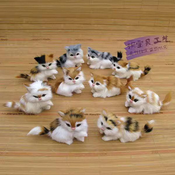 仿真小猫咪玩具模型玩偶儿童毛绒工艺品仿真猫猫咪家居摆件动物皮