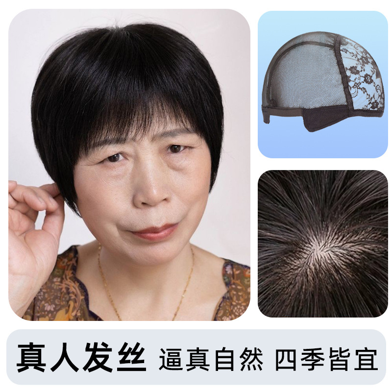 假发女短发全真人发假发中老年女士妈妈全头套化疗光头整顶假发套