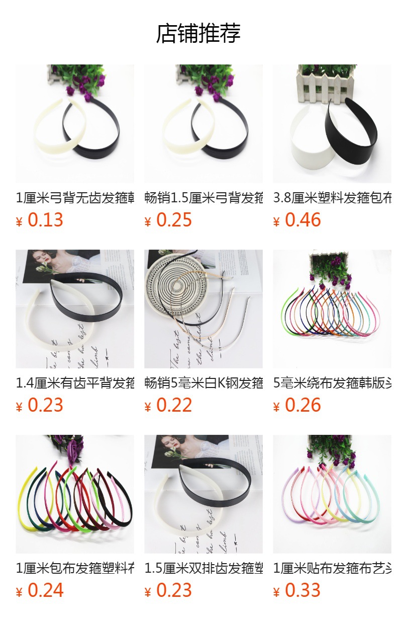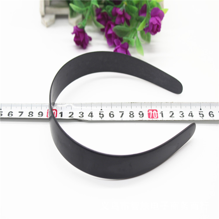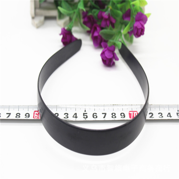 2.5厘米塑料发箍配件,长度是35.6厘米,中间实际宽度2.5厘米,两端1厘米左右,重11.8克,有白色和黑色两种,常用规格有5和7和1和1.2和1.4和2.5和3.8和4.8厘米,量大可以定做加工。