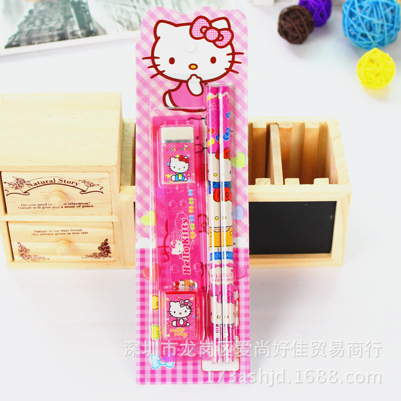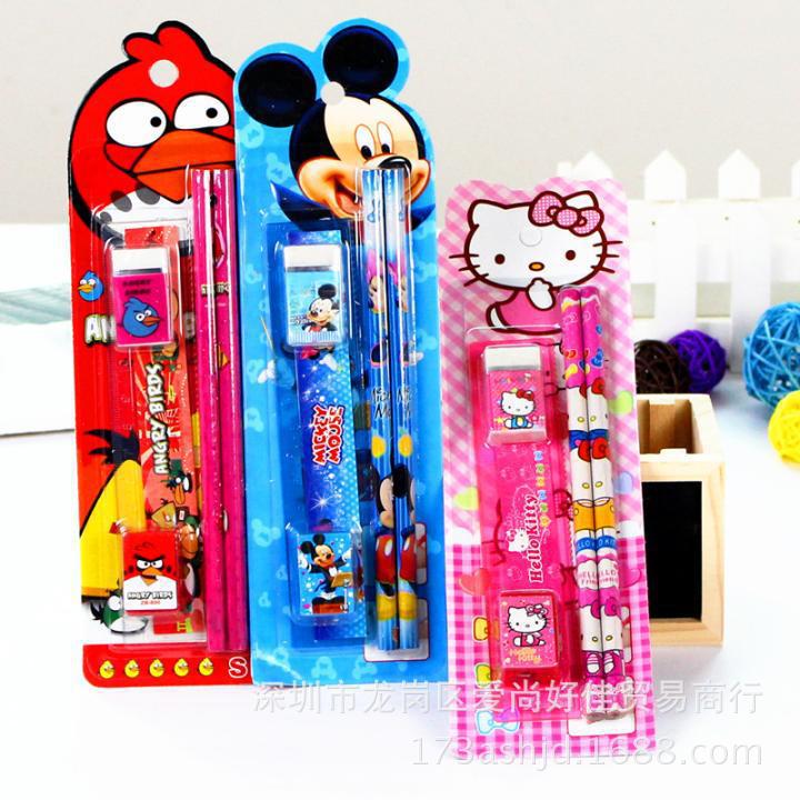 商品详情:文具5件套由 :2只铅笔 1个尺子 1个橡皮 1个卷笔刀组成