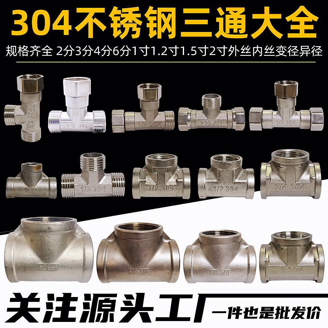 304ステンレス2346分1インチ三方324050内糸三方水道管変径異径活動三方