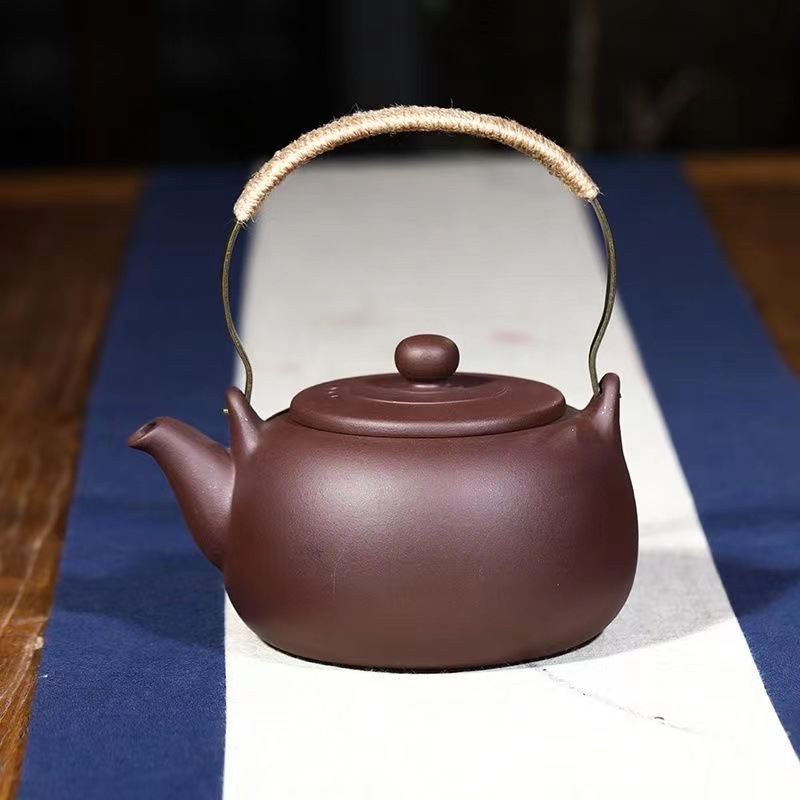 竹节提梁壶造型经典而大气,壶身比例分配得当,做工老到而精细,壶体呈扁圆形且均称,用料及其考究,采用老紫泥制作而成,壶的提梁较为圆润,过渡和缓,整体均称,隆起的盖子显得丰腴饱满,浑然一体,布局紧致而有度,构思合理。