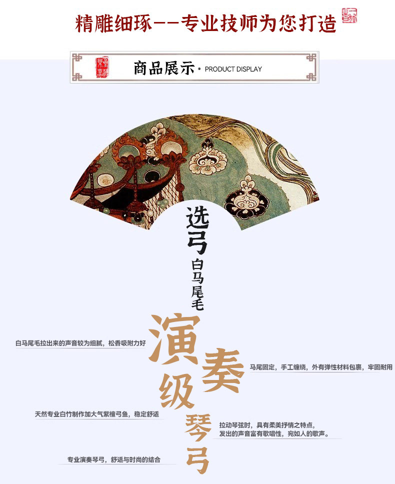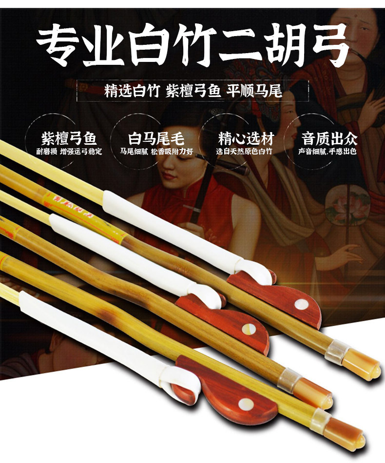 演奏級二胡弓高級二胡弓子紫檀弓魚精選白竹真馬尾二胡弓部品卸売り