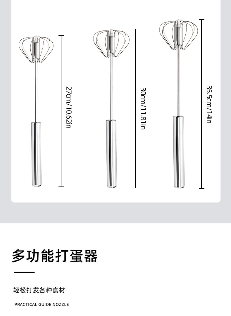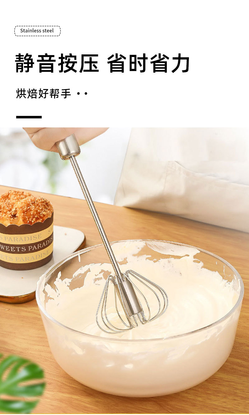 ステンレス半自動回転卵泡立て器キッチンベーキングツール家庭用ステンレス手動プッシュ式卵泡立て器