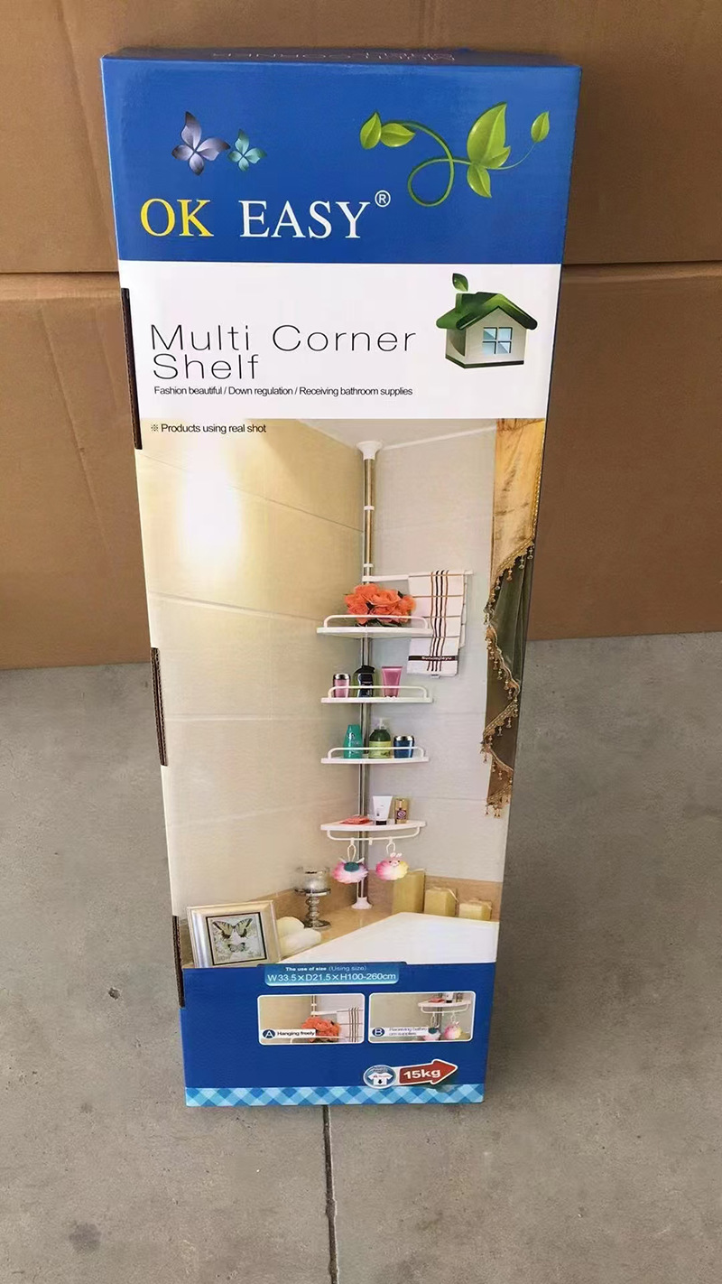 大量卸売り4浴室棚ステンレス伸縮棒天立式トイレ収納壁曲がり角三