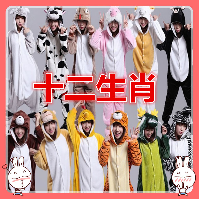 秋の冬の十二生肖のニワトリの犬の虎の羊のウサギの漫画の動物の連体のパジャマのフランネルの男女のカップルの部屋の服