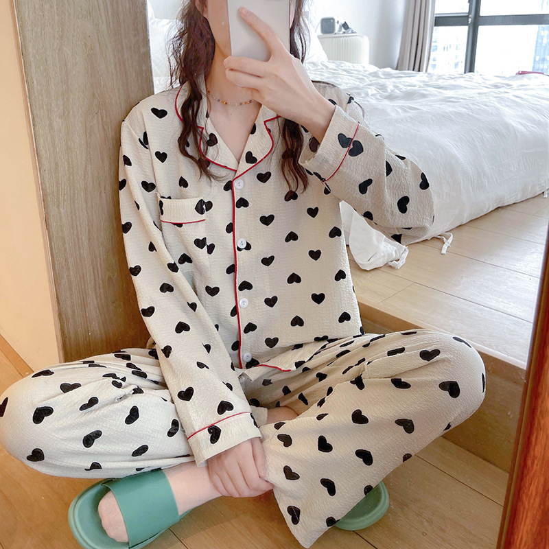 高級感のあるパジャマの女性の春秋の新型の綿糸の長袖の甘い愛の秋冬のゆったりしているカーディガンの部屋の服のスーツ