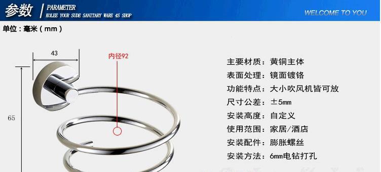 銅製ステンレス製簡易ヘアドライヤーホルダー 浴室収納ラック ヘアドライヤー収納 壁掛けヘアドライヤーホルダー クロスボーダー