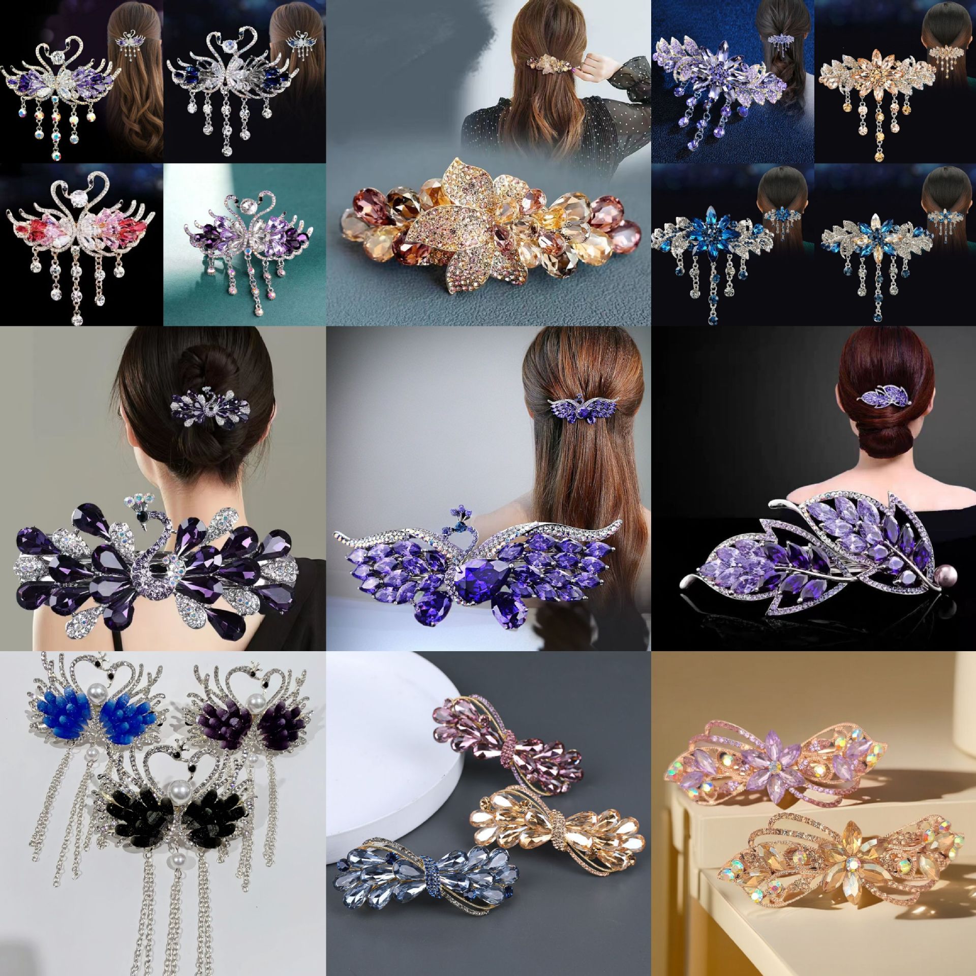 ヘアピン高級感小香風馬尾クリップさん超キラキラ贅沢ドリルトップクリップ水晶盤髪後頭部飾り