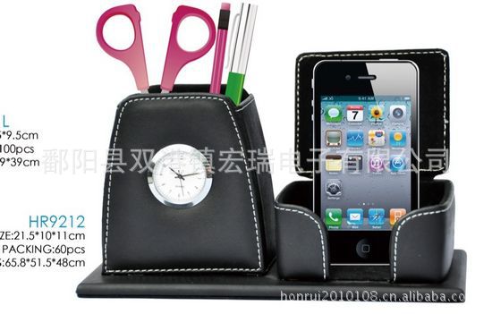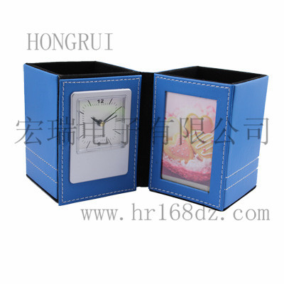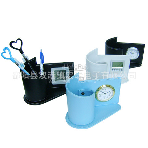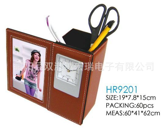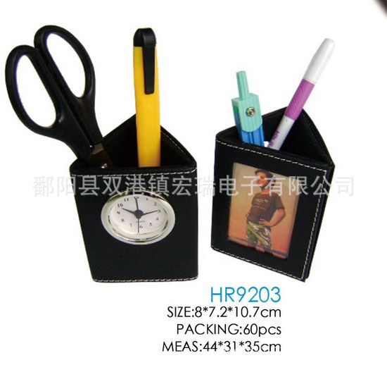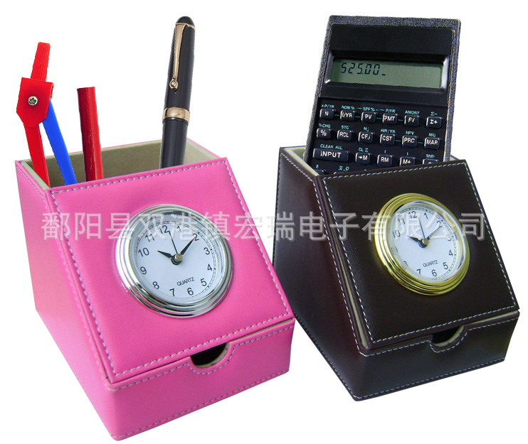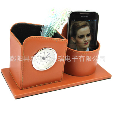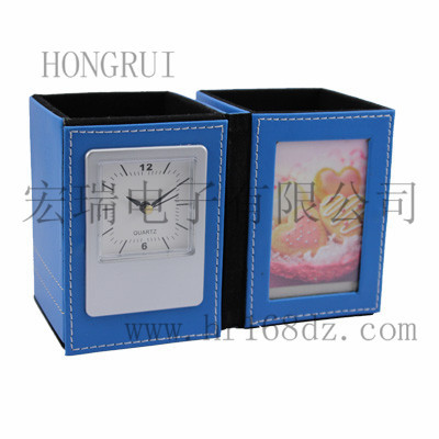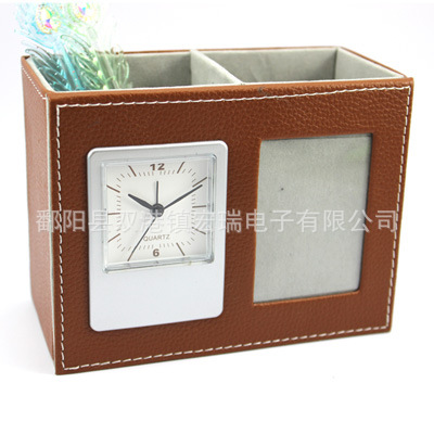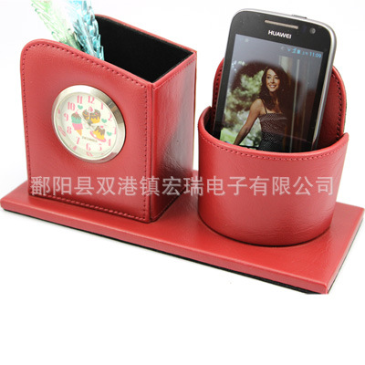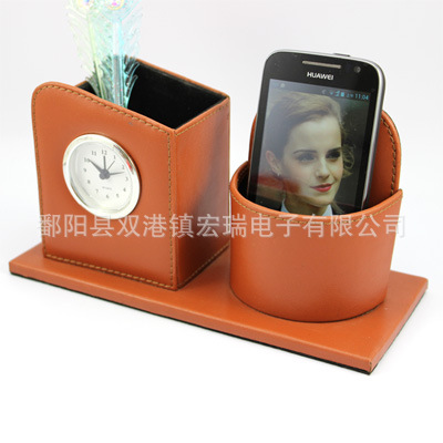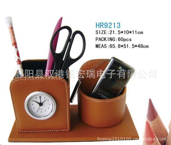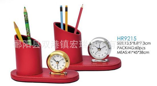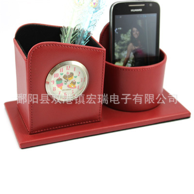 ビジネス革筆立て広告ギフト筆立て/擬皮筆立て/革筆立て時計