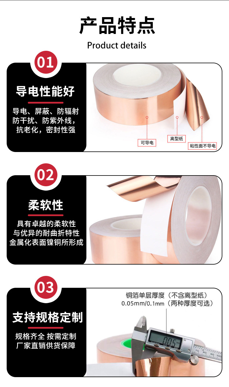 铜箔胶带单双导电背胶自粘铜箔纸单面触摸散热耐高温电磁屏蔽胶带