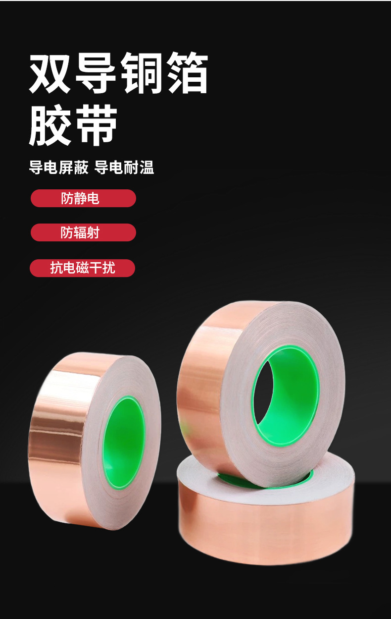 背胶铜箔导电屏蔽干扰耐高温胶带 防辐射散热自粘双导电铜箔胶带