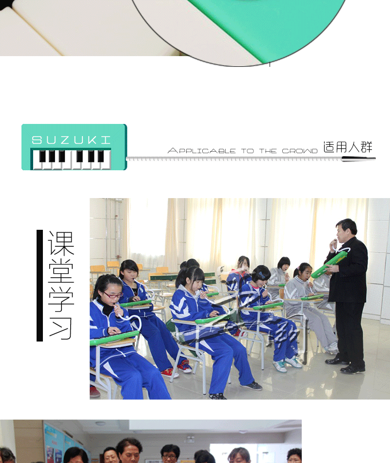 口风琴是由簧片震动发出声音的乐器.它是一种以综合吹管乐器和键盘乐器为一体的新型乐器.口风琴由键盘与吹管(吹嘴)组成.学生上课时只要把吹管直接套在键盘接口处就可以进行演奏,也可将其平放在桌上进行演奏.口风琴具有钢琴,电子琴之外其他乐器所不能替代的功能.