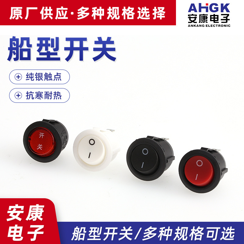 船型スイッチKCD1-105丸形取付穴20mmリフトスイッチ両足二段ホワイトブラックレッド