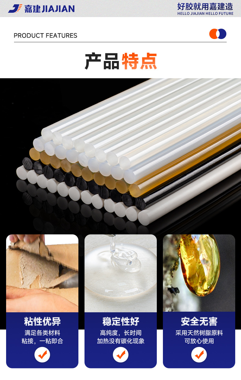 Jiajian 透明ホットメルト接着剤スティック卸売高粘度ホットメルト接着剤スティック eva ホットメルト接着剤ストリップ 7mm11mm 熱容量接着剤スティック