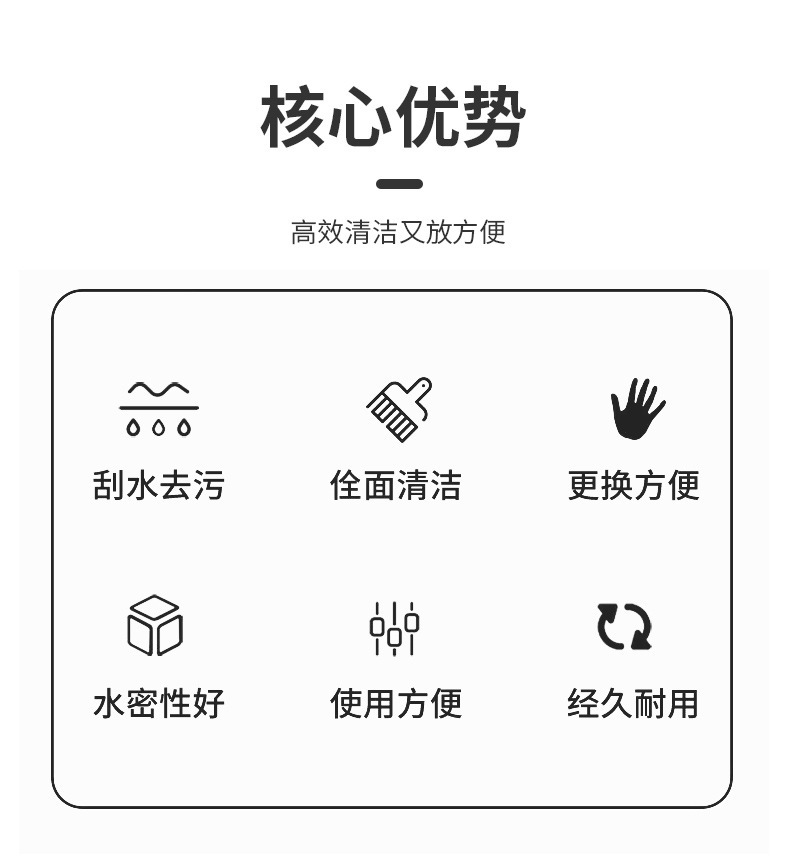 本品采用全新原料精制而成 圴采用了二次加工法 彻底解决了有毛刺刮不干净的问题,刮水不留痕从此就一步解决