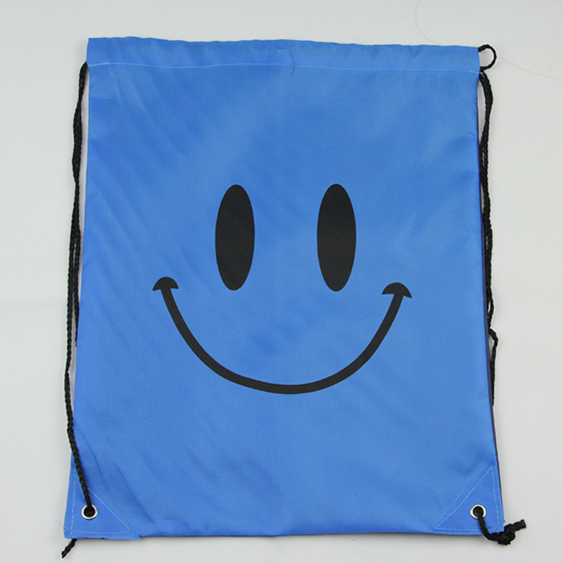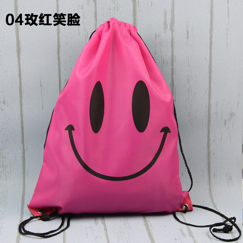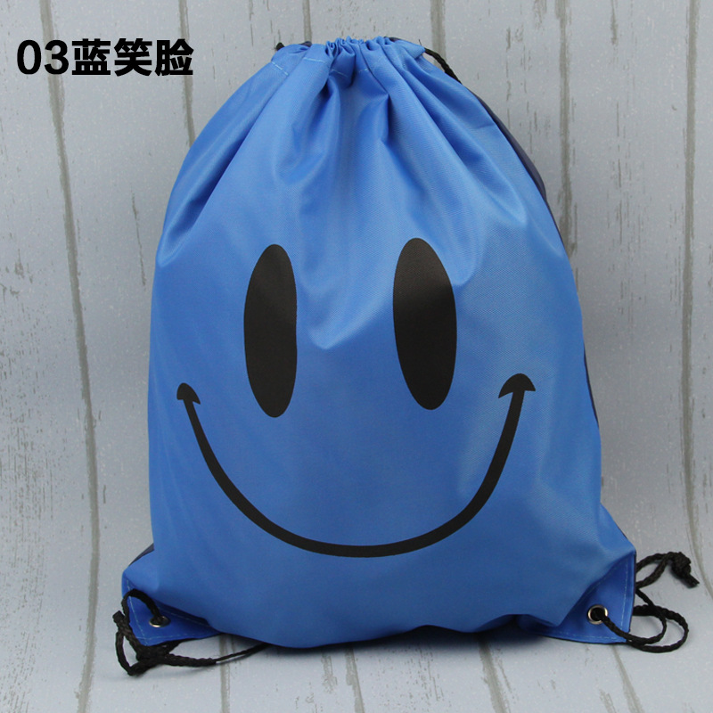 宝贝特点:牛津布材质轻薄且耐用,抽绳设计,可双肩背,容量大,方便系带。笑脸图案设计,青春时尚,男女通用。