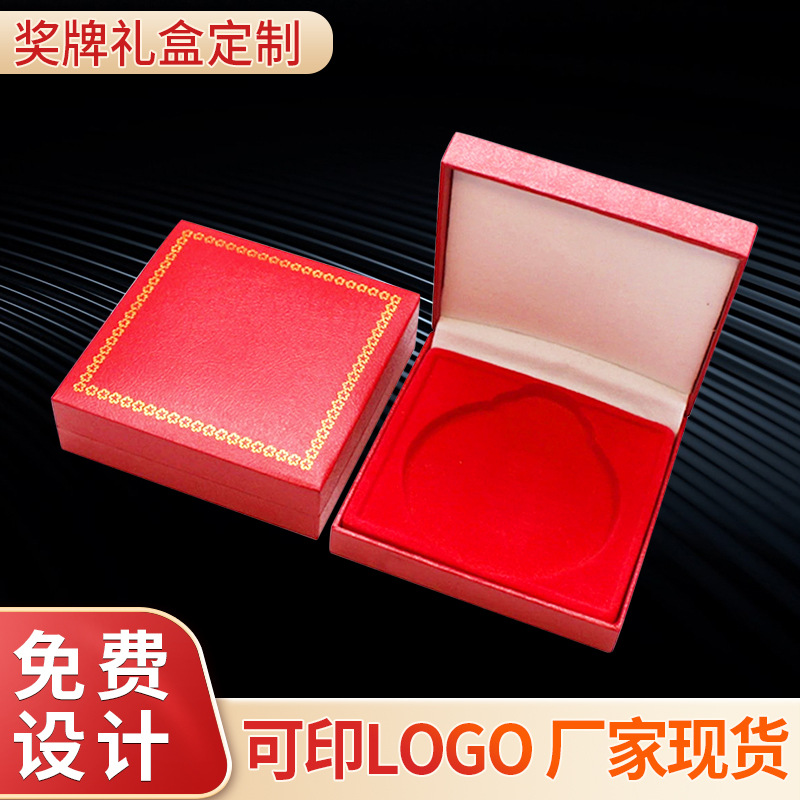 植毛はpu皮の特殊な紙の漆の紙の紋章の箱のメダルの礼箱の通用のアクセサリーの収納箱のメダルの包装の箱をまねます。