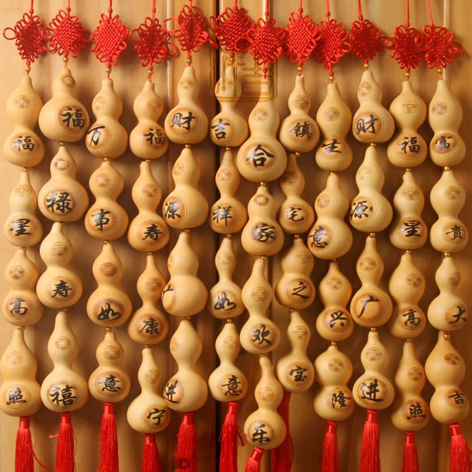 メーカーの天然ひょうたん、5文字と4文字の文字ストリング、縁起の良い言葉、彫刻されたドアカーテンペンダント、家と万石興の小さなひょうたん