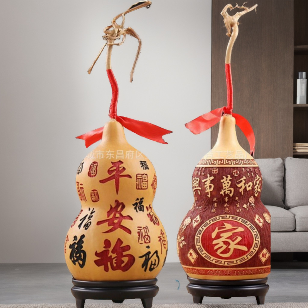メーカー卸売り天然大瓢箪彫刻瓢箪家と万事興平安満福彩絵瓢箪置物