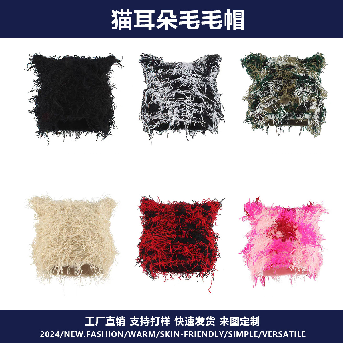 秋冬越境レジャーかわいい猫耳毛帽アウトドア街頭個性ヒップホップ防風保温騎乗ニット帽