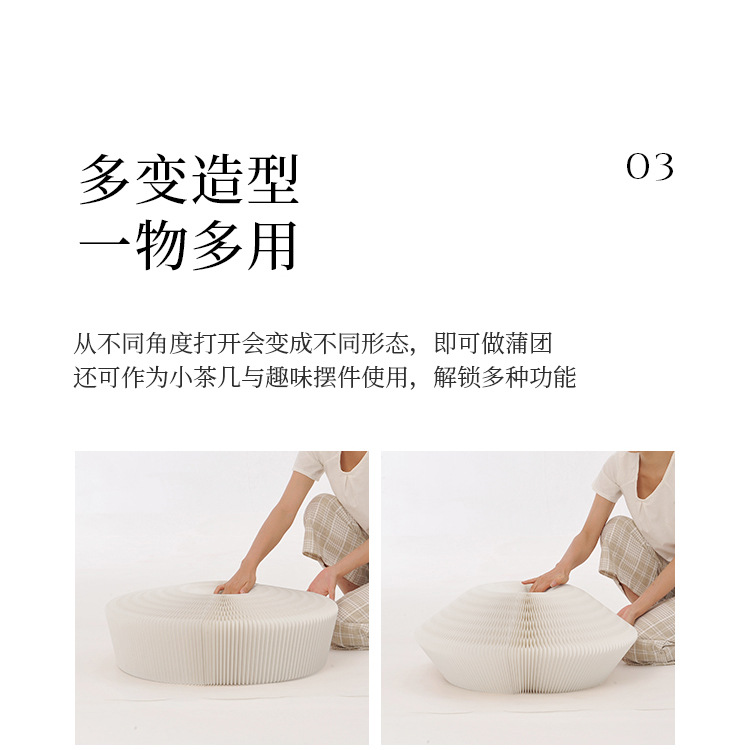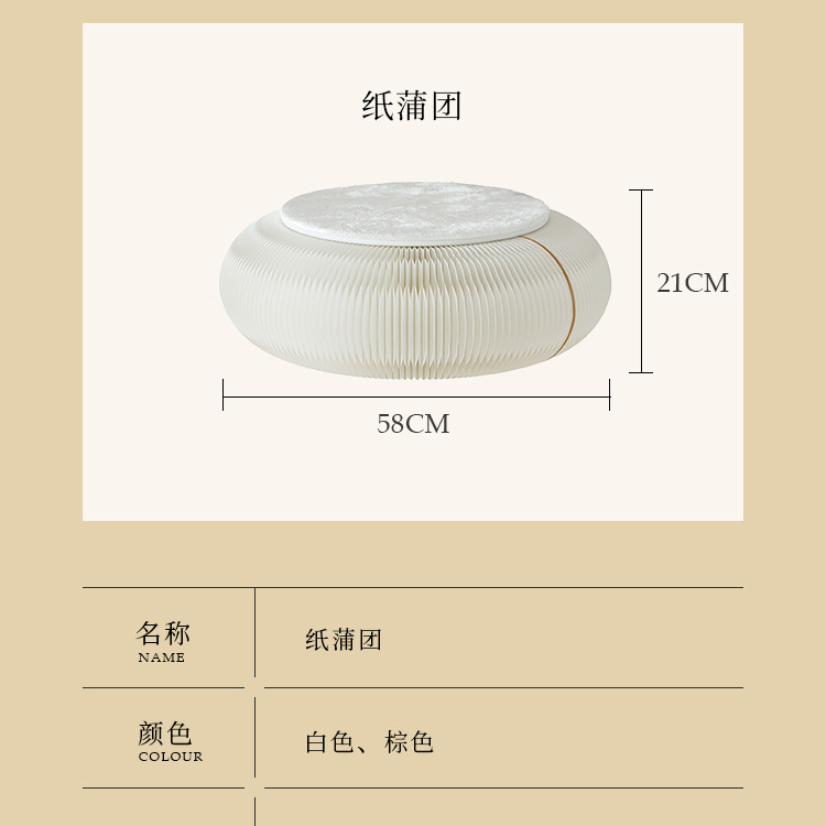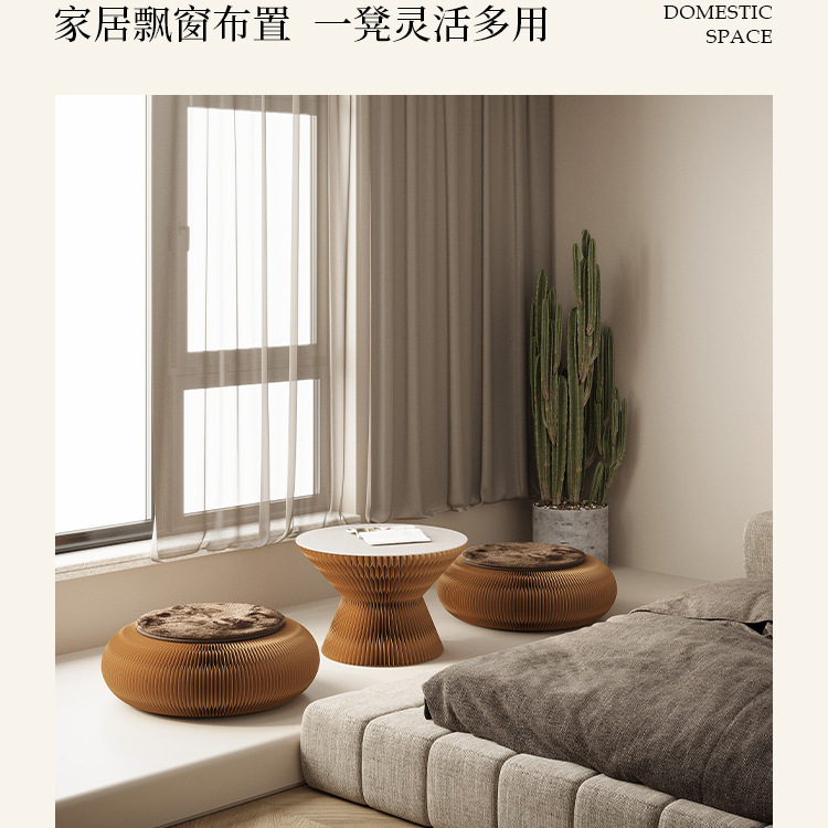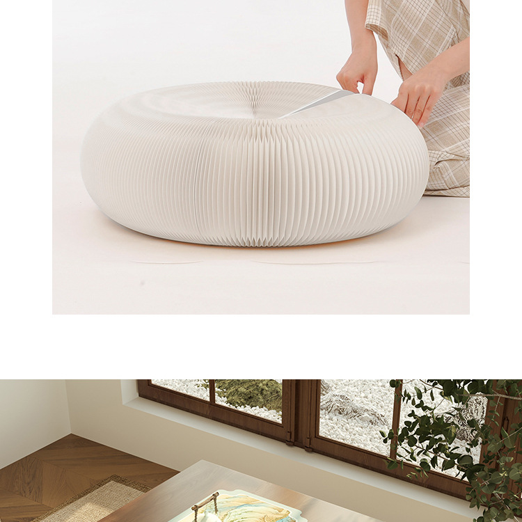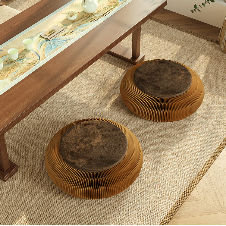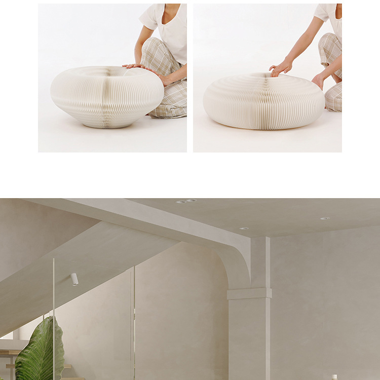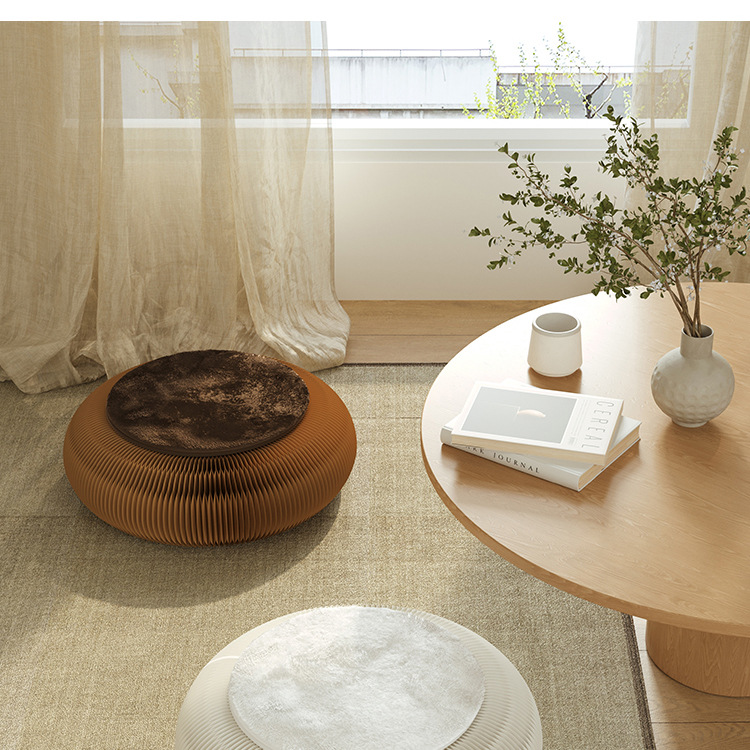 折りたたみ式丸型ペーパーベンチ、省スペース家具、ペーパー布団、環境に優しい素材の座布団