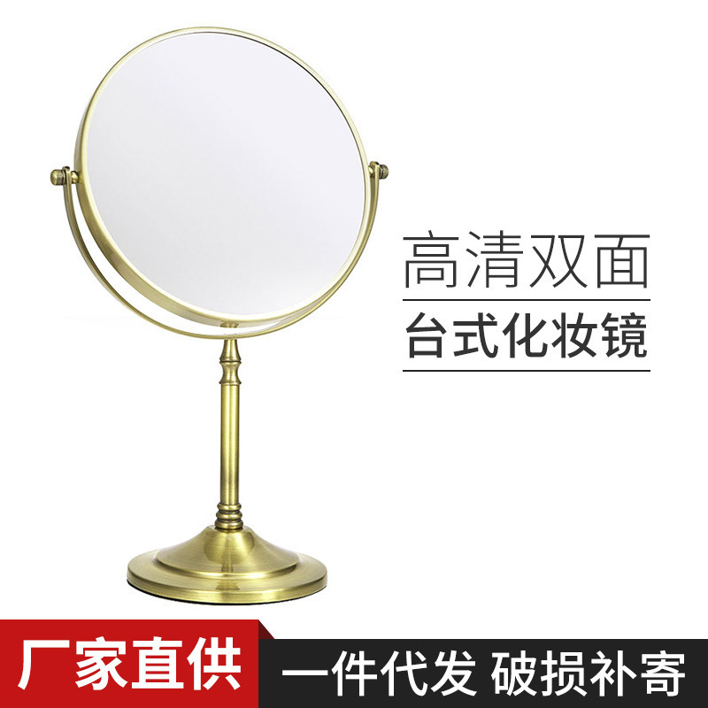 メーカー直販青古銅ひょうたん金属hdデスクトップ化粧鏡360度回転家庭用寮両面鏡