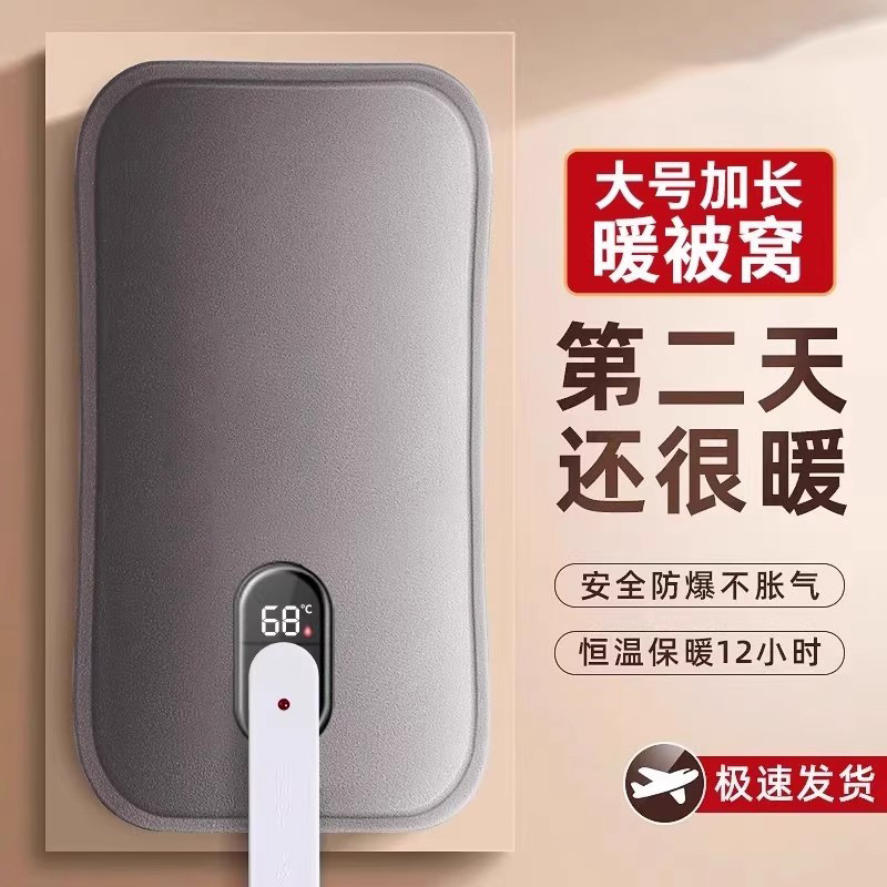 充电式热水袋智能数显防爆暖宝宝冬季暖被窝加长暖水袋毛绒电暖宝