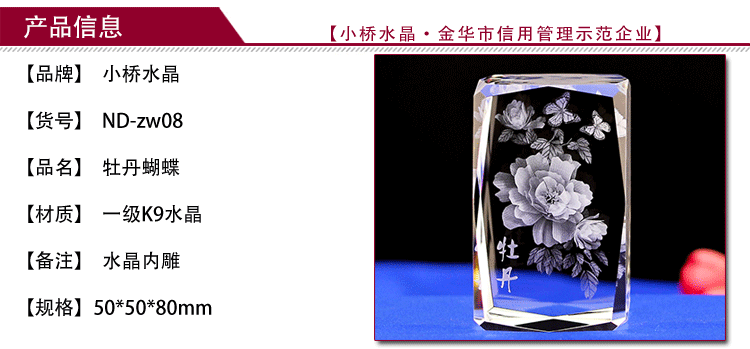 浦江小桥水晶工艺品有限公司成立于2001年,是一家集设计、生产、销售于一体的浦江县水晶工艺品行业头部企业。本公司现有员工160多人,办公面积1000多平方米,生产仓储面积6000多平方米。主要生产水晶激光内雕、奖杯奖牌,工艺摆件等水晶工艺品,产品定位高端,附加值较高,主要销往美国、日本、欧洲等发达国家,是众多世界知名企业的水晶礼品生产厂家。年自营出口300万美元左右。连续10多年成为浦江县纳税超100万企业。