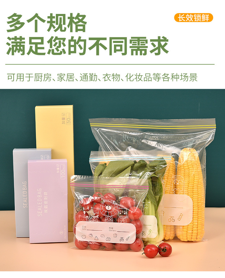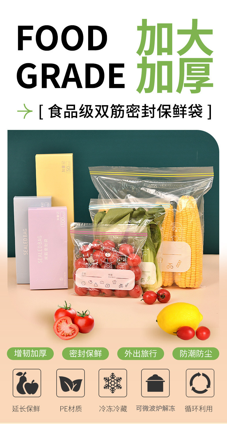 長条双筋厚手密封保存袋食品級家庭用キッチン冷蔵庫冷蔵分装密袋密封袋