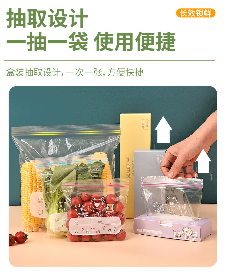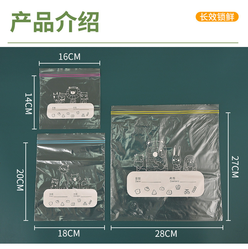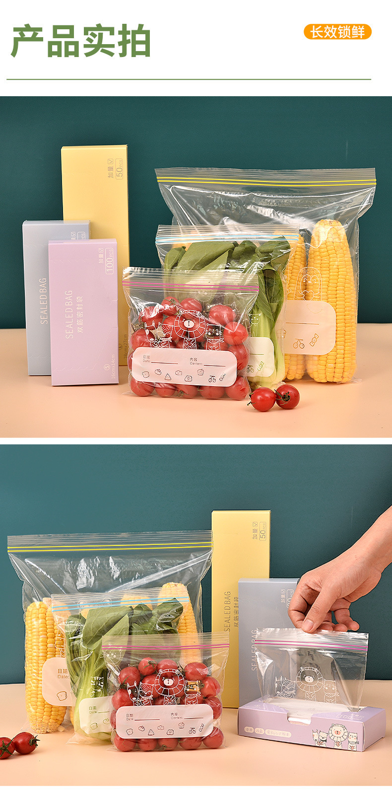 食品保存袋、家庭用冷蔵庫保存包装袋、ジップロック袋、再利用可能な漫画鮮度保持密封袋
