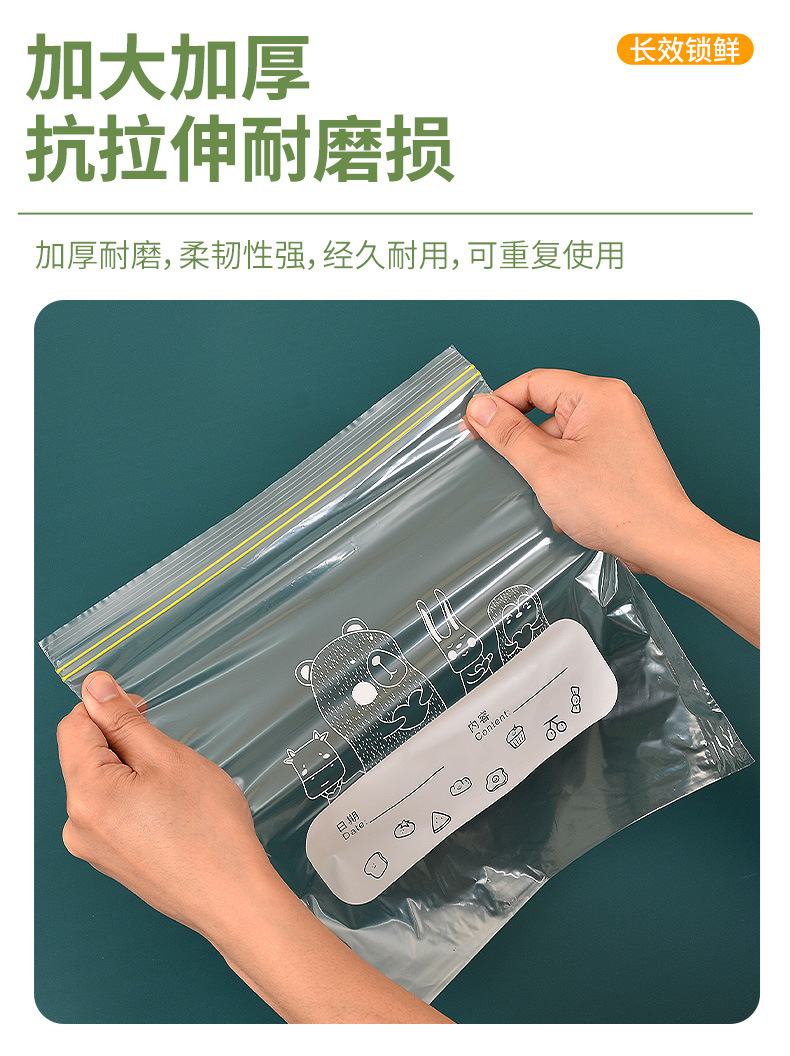 厚手二重筋密封鮮度保持袋 家庭用食品冷凍冷蔵庫用分割袋 漫画柄密封袋 食品グレード