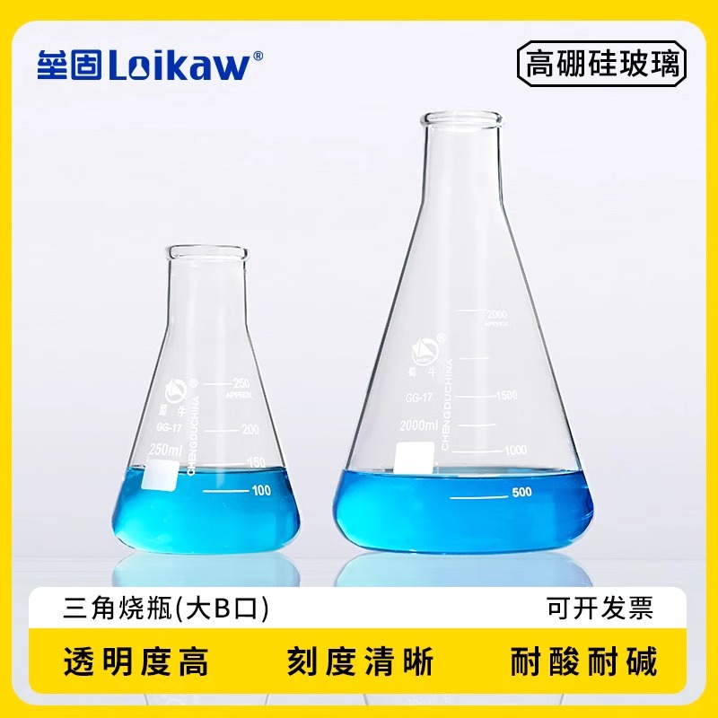[蜀牛] ガラス三角フラスコ大b口ガラス錐形瓶幅首高ホウ素シリコン三角瓶円錐フラスコ