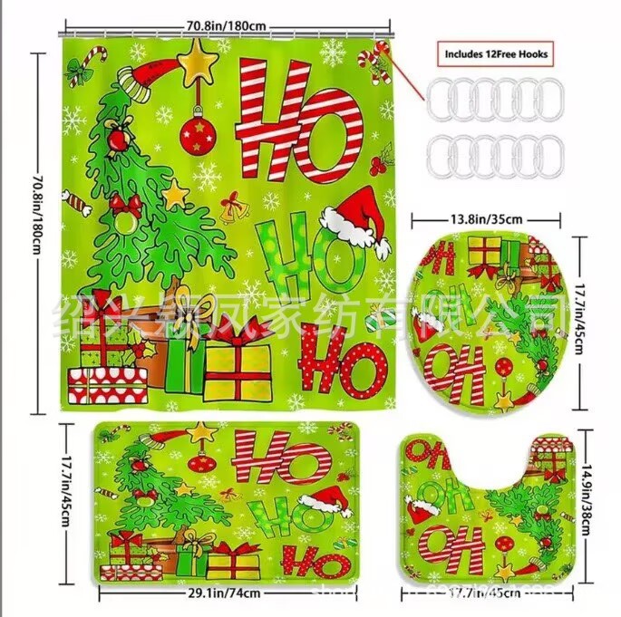 クリスマスツリー クリスマス バスルームカーテン 浴室仕切りカーテン デジタルプリント トイレ3点セット 4点セット 大量注文割引あり