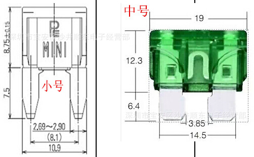 尺寸如图 中号1A 2A 3A 4A 5A 7.5A 10A 15A 20A 25A 30A 35A 40A 50A