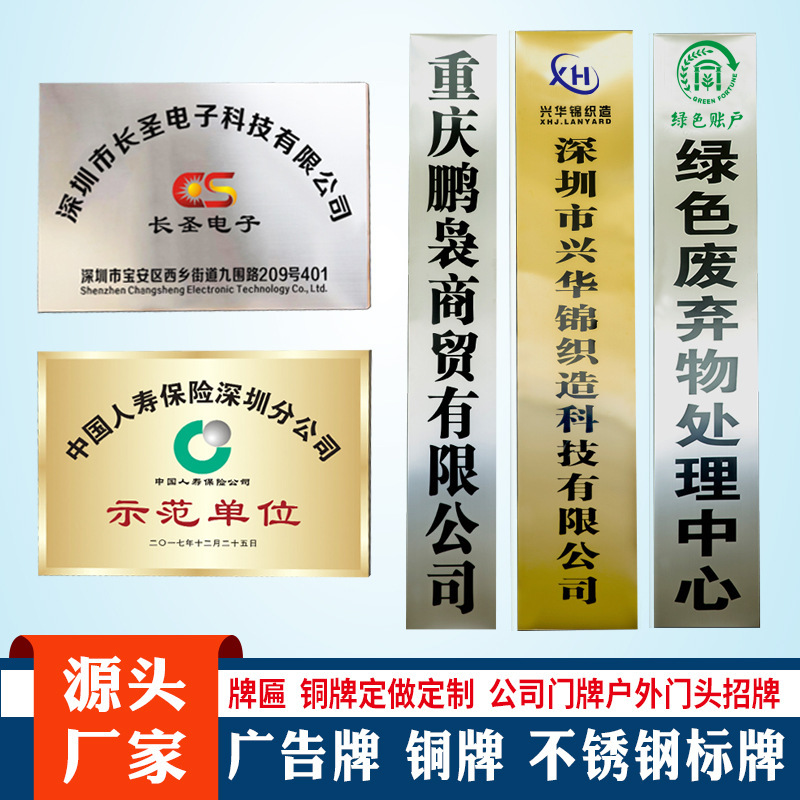 カスタマイズされた金属鉄銅亜鉛合金メッキ看板ハイライトアルミステンレス腐食印刷銘板