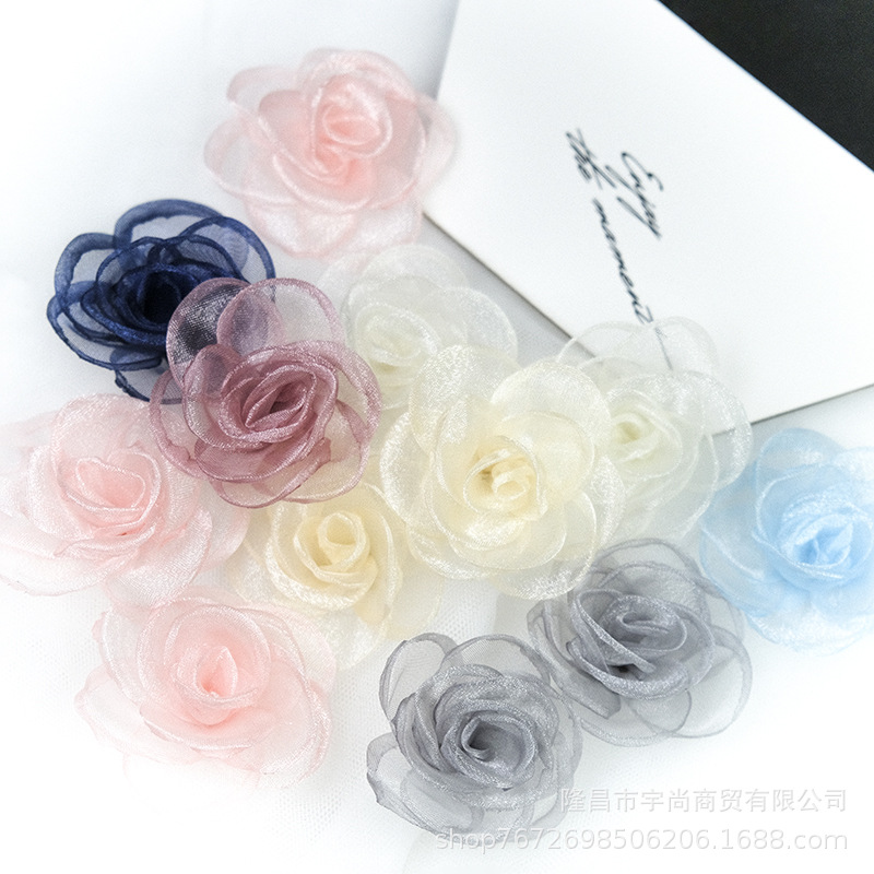 韓国版欧根紗花5cm網糸シフォン薔薇diy手作りヘアピンアクセサリー