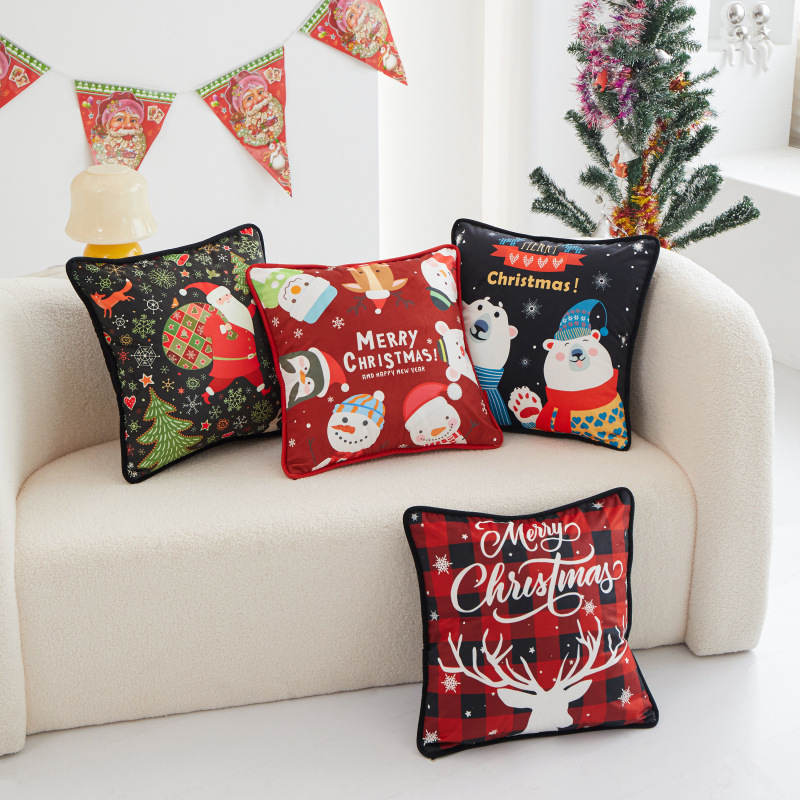 厂家直销礼品跨境工艺款荷兰绒印花圣诞节系列圣诞老人麋鹿抱枕套