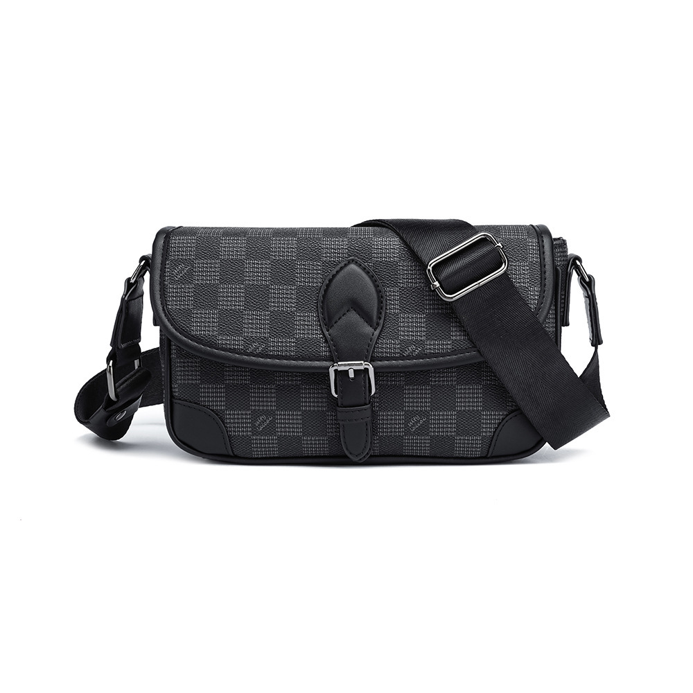 新款日系潮牌翻盖小挎包2025男士格纹皮质单肩包手机休闲小挎包批