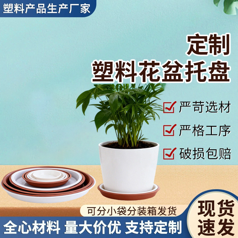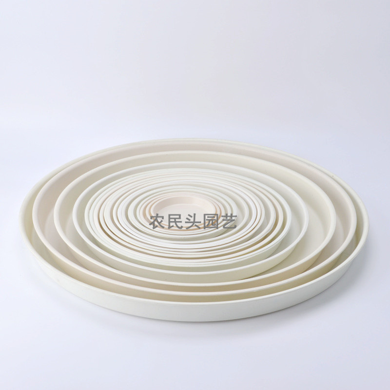 卸売りのプラスチックの植木鉢の底の皿は丸いです。白い植木鉢の底のブラケットは水を受けます。