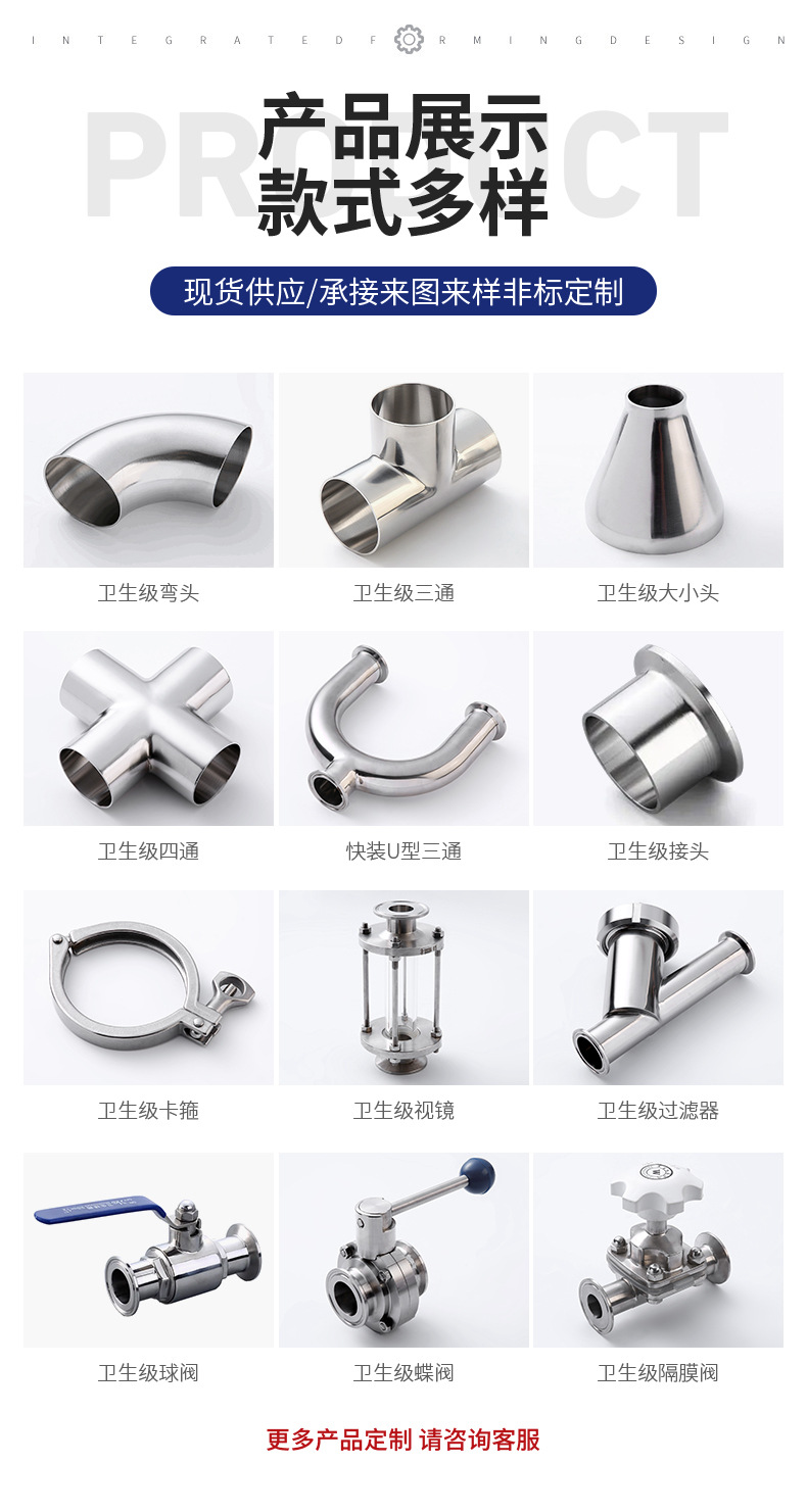316L ステンレス鋼製三方継手、衛生グレード、食品グレード、三方継手、カスタム内外研磨継手