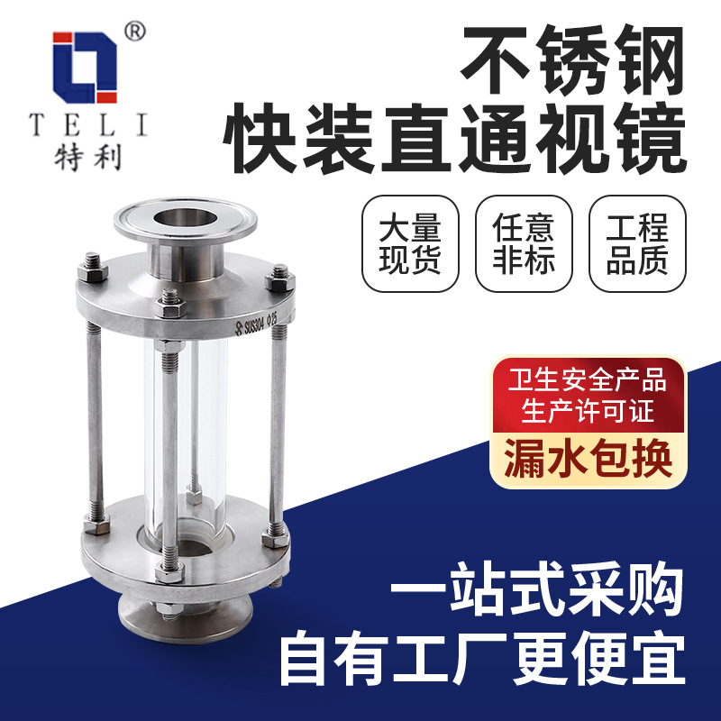 メーカー快装ガラス配管視鏡304ステンレス衛生級バンド式直通快接視杯カスタマイズ