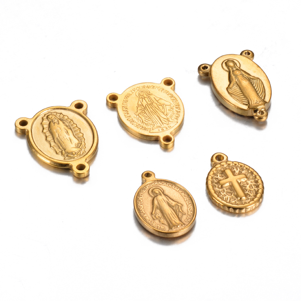 クロスボーダー楕円ステンレス聖母マリアアクセサリー三穴両面模様宗教信仰小ペンダント